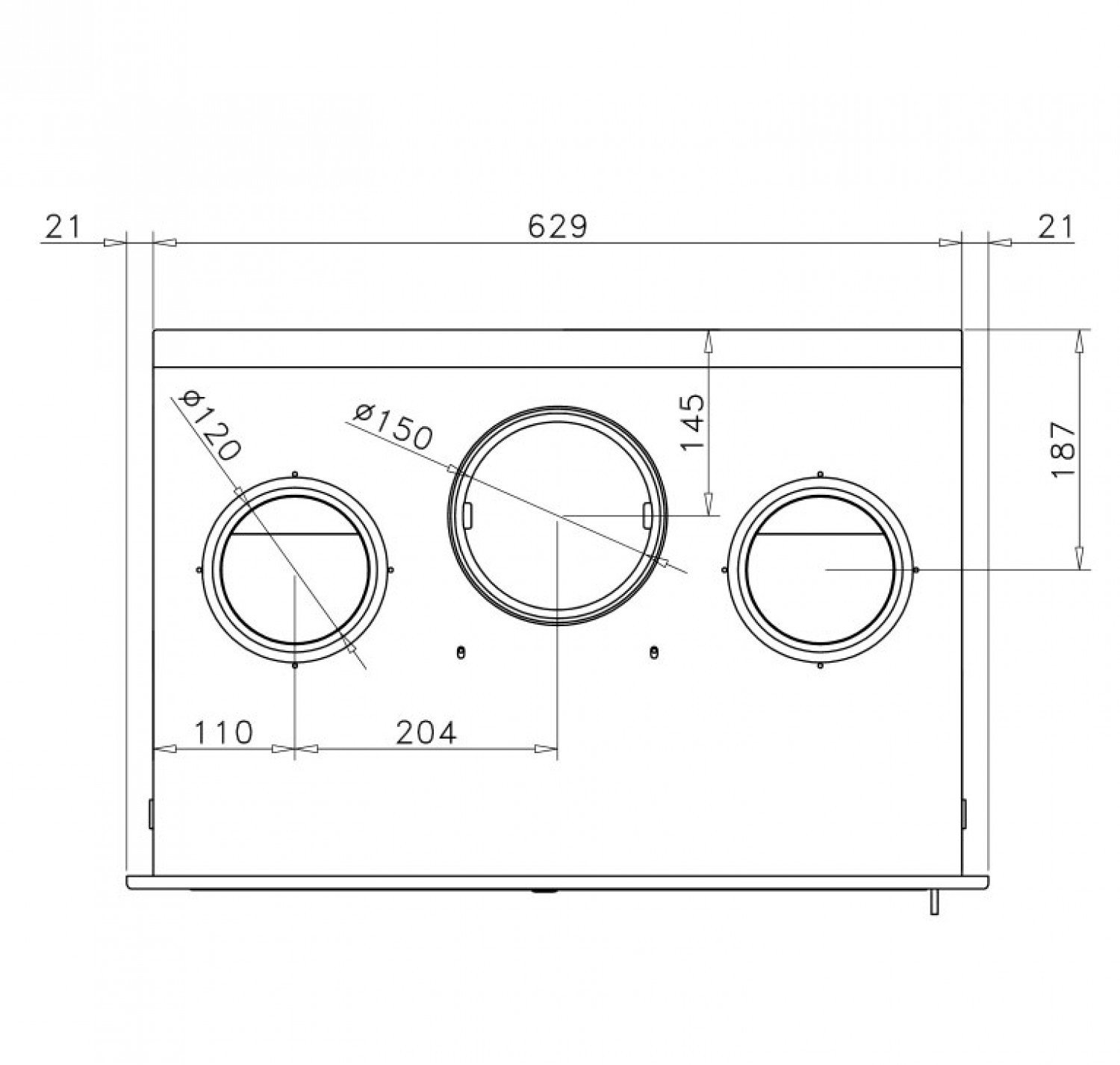 Стальной вертикальный инсерт с первичным и вторичным регистром подачи воздуха, благодаря чему перед попаданием в очаг воздух сначала прогревается.