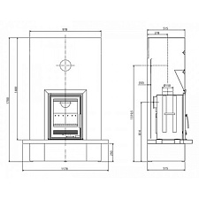 Печь-камин Keddy K-815 изготовлена из чугуна. Большое центральное и 2 боковых стекла.