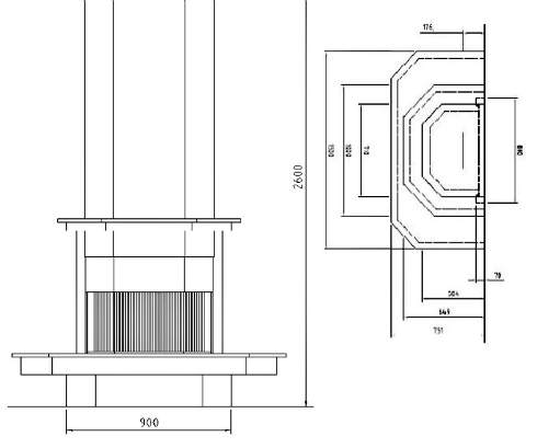 Цена указана за камин в стандартном исполнении (см. чертеж).