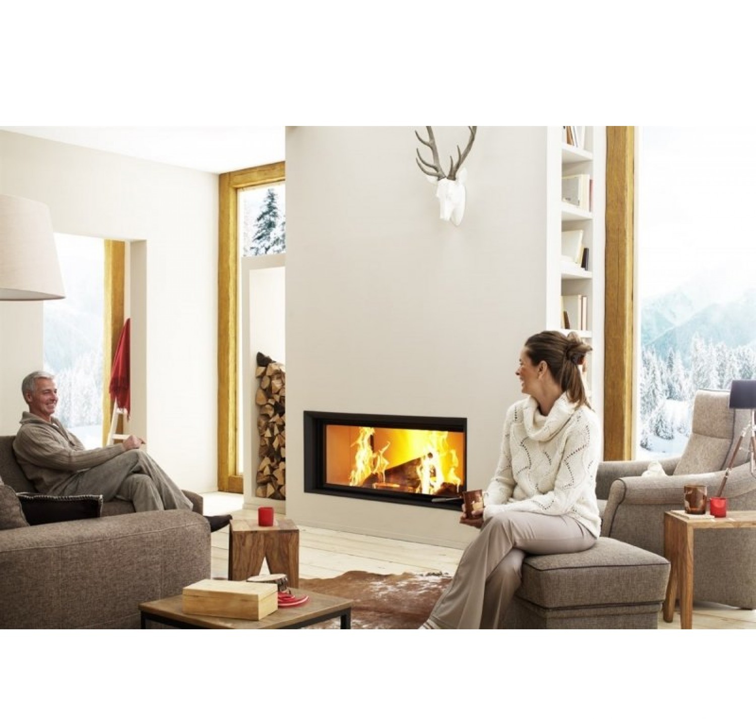 Каминная топка с прямым стеклом. Топочная камера футерована шамотом. Подъёмный механизм двери (система Easy-Lift). Ширина дверки 1660 мм. Высота дверки 538 мм. Возможно подключение воздуха извне.