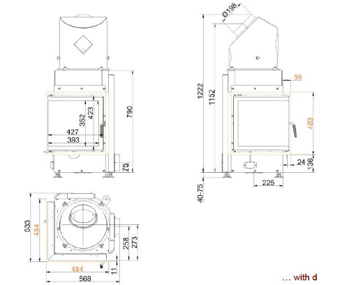 Топка Eck-Kamin 42/42/42 без подъма, с одним стеклом.
