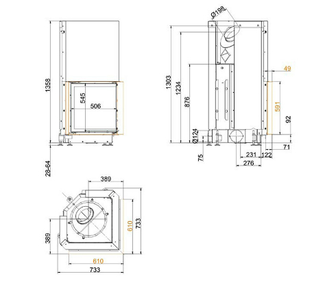 Топка Eck-K 57/52/52 с подъемом, с одним стеклом