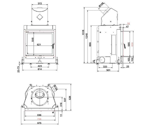 Топка КК 57/67 без подъема с одним плоским стеклом - 1 шт.