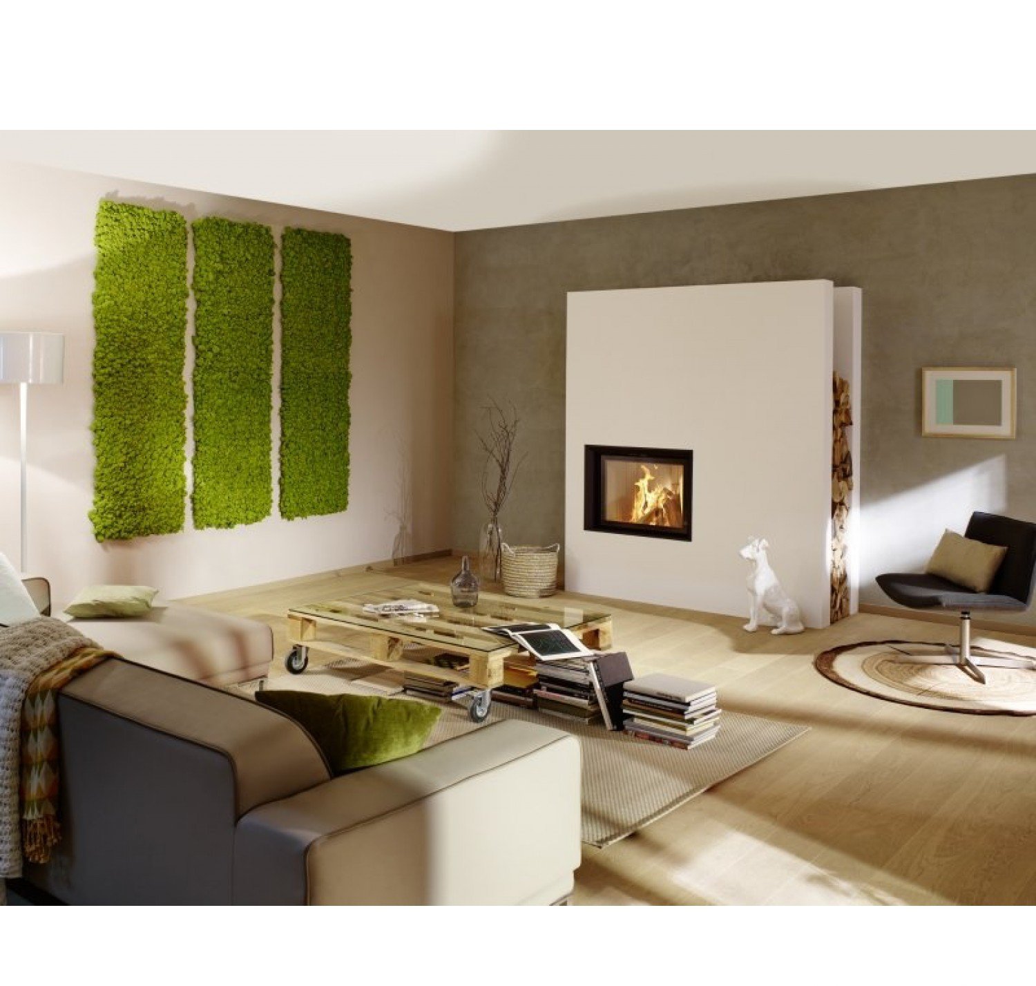 Стальная каминная топка с прямым стеклом. Подъёмная дверца (Система Easy-Lift). Горизонтальное открывание двери для чистки стекла. Ширина дверки 656 мм. Высота дверки 488 мм. Возможно подключение воздуха извне.
