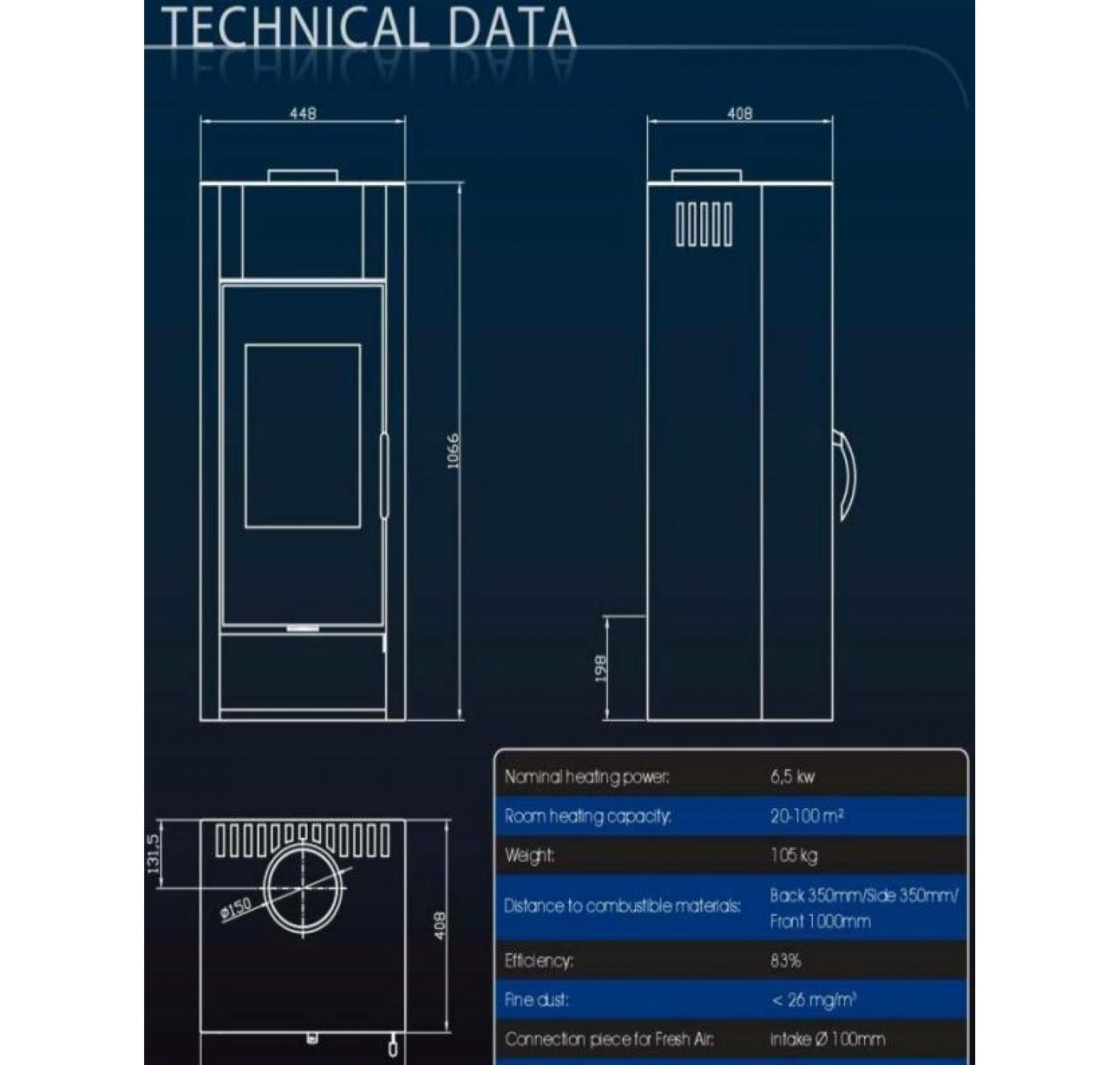• Диаметр дымохода, (мм)