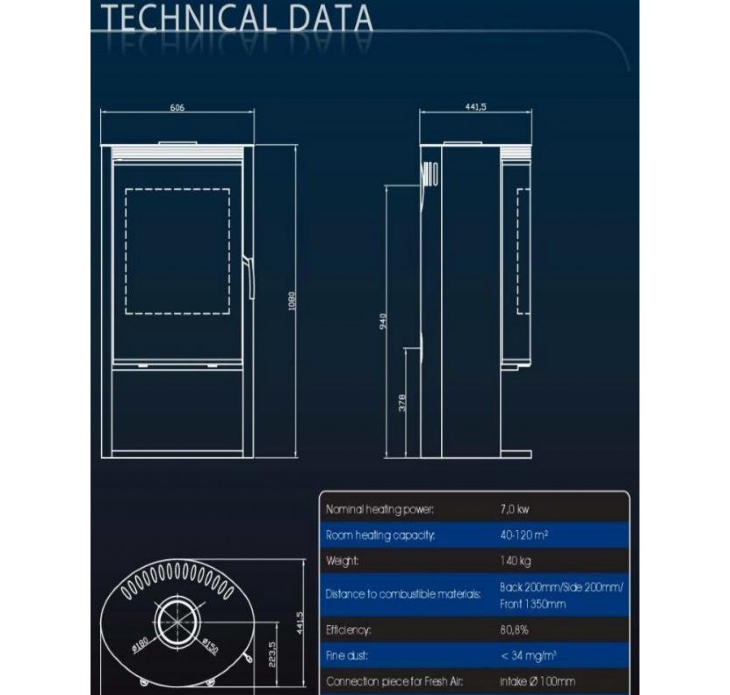 - Диаметр дымохода, (мм) 150 мм.