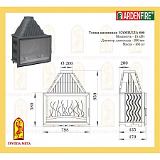 Поворотная колосниковая решетка, теплонакопительный блок, выдвижной зольник и фриз из талькохлорита.
