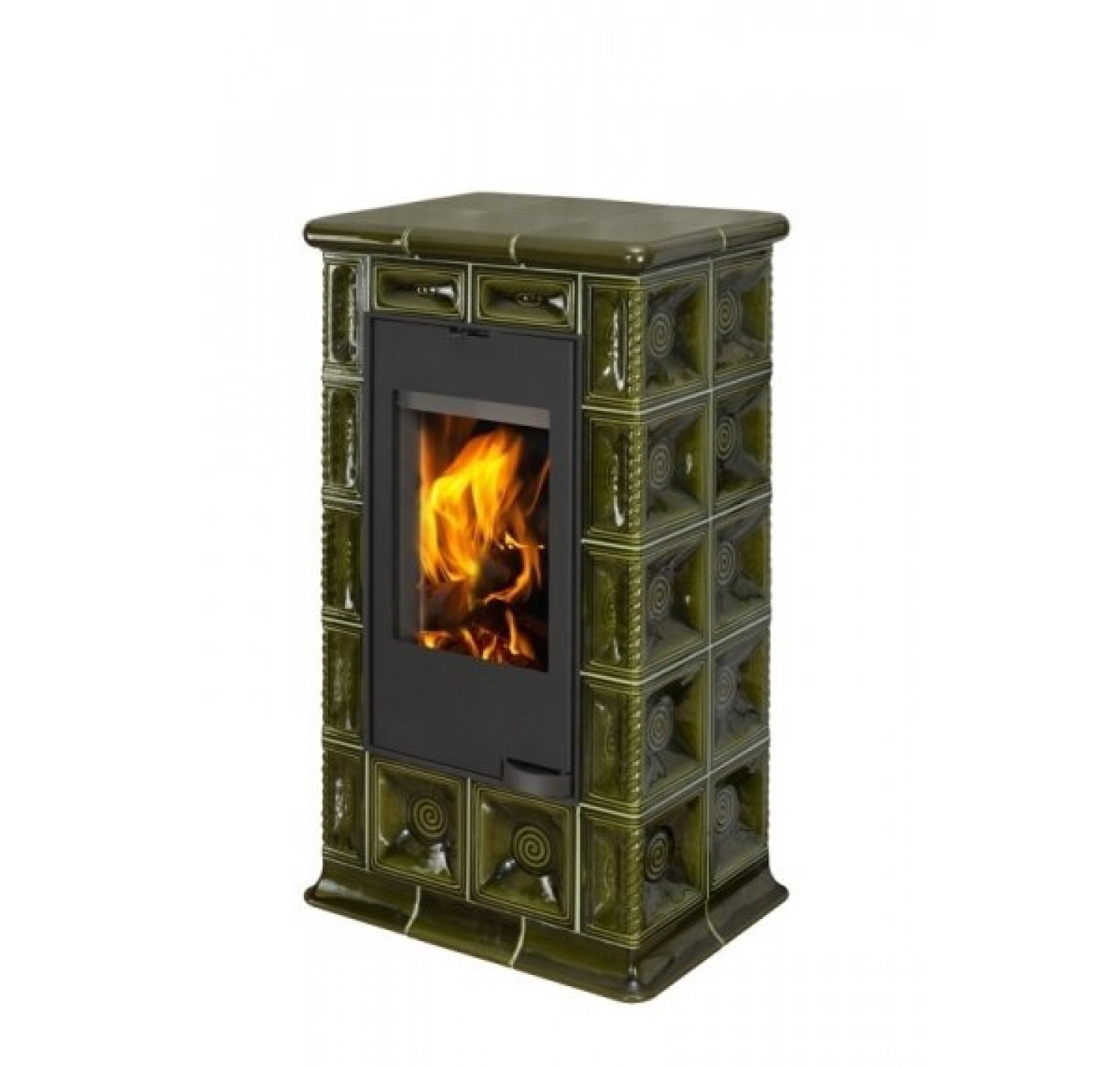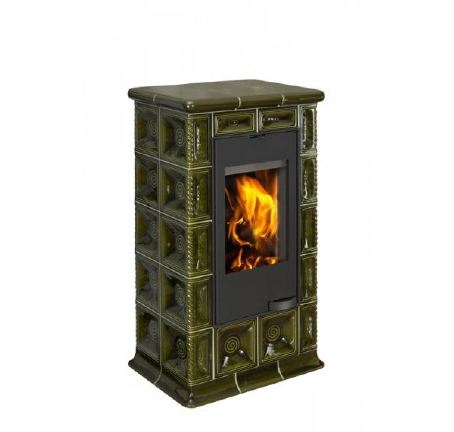 С помощью изразцового декора Ваш дом преобразится до неузнаваемости и станет настоящим произведением искусства. Большие керамические блоки, которые используются в облицовке данной модели также несут функцию теплонакопительных модулей (аккумуляция), которые позволяют излучать тепло в течении нескольких часов после того как огонь погаснет. Данная модель отлично подходит для отопления любого помещения, объем которого не превышает 220 м3. Застеклённая дверца повышает визуальный контакт с пылающим огнем. Керамическая облицовка оригинальна, но вместе с тем, сдержанно элегантна. Аккуратно сделаны и обработаны мельчайшие элементы, углы, плавные линии.