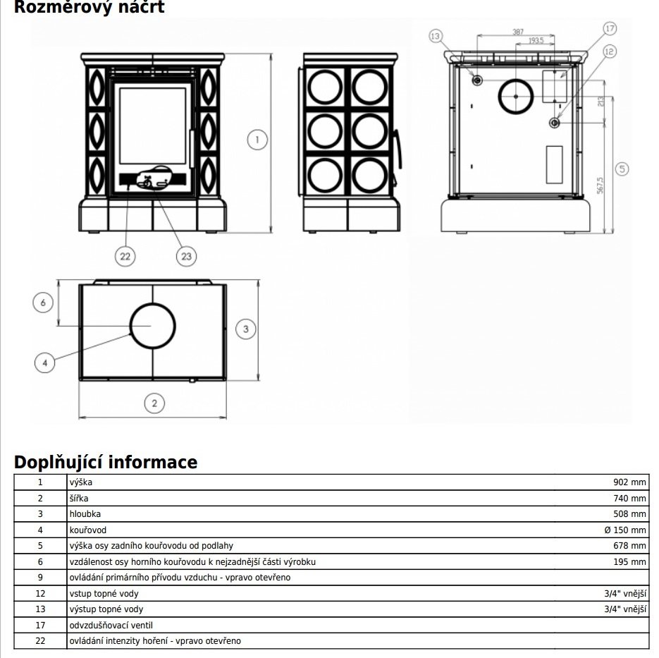 - Диаметр дымохода, (мм) 150
