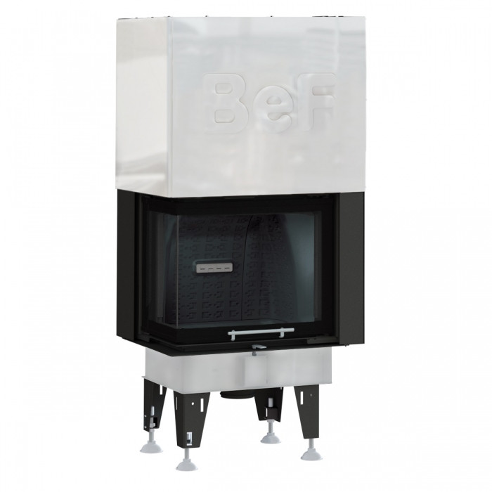 Угловая каминная топка BeF Royal V 7 CL с Г-образной формой дверцы и подъемом – это европейская современная модель предназначенная для работы на сухих дровах лиственных пород дерева или брикетах.
