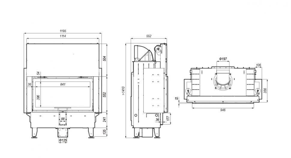 - Габаритные размеры ШxГxВ, (мм): 1195x552x1410
