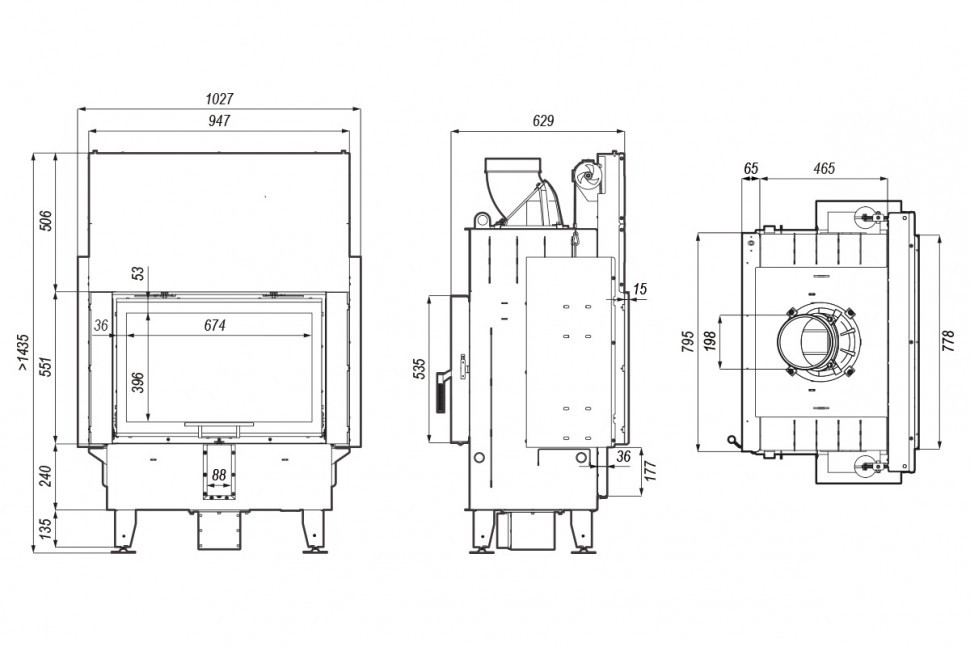 - Габаритные размеры ШxГxВ, (мм): 1027x629x1435