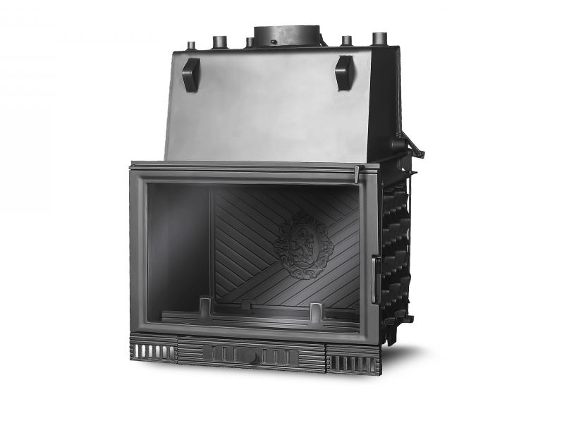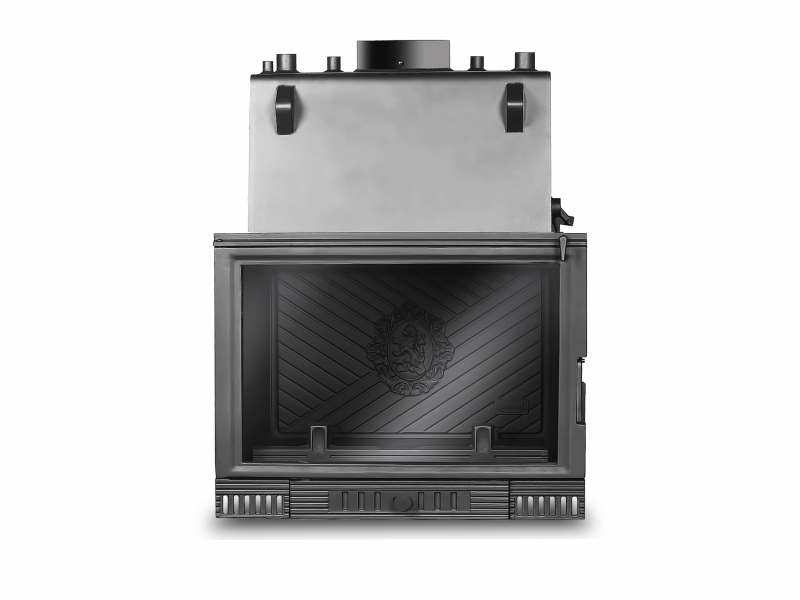 - Дополнительная жаростойкая плита, защищающая тыльную сторону от прогорания толщиной 20 мм декорирована гербом со львом.