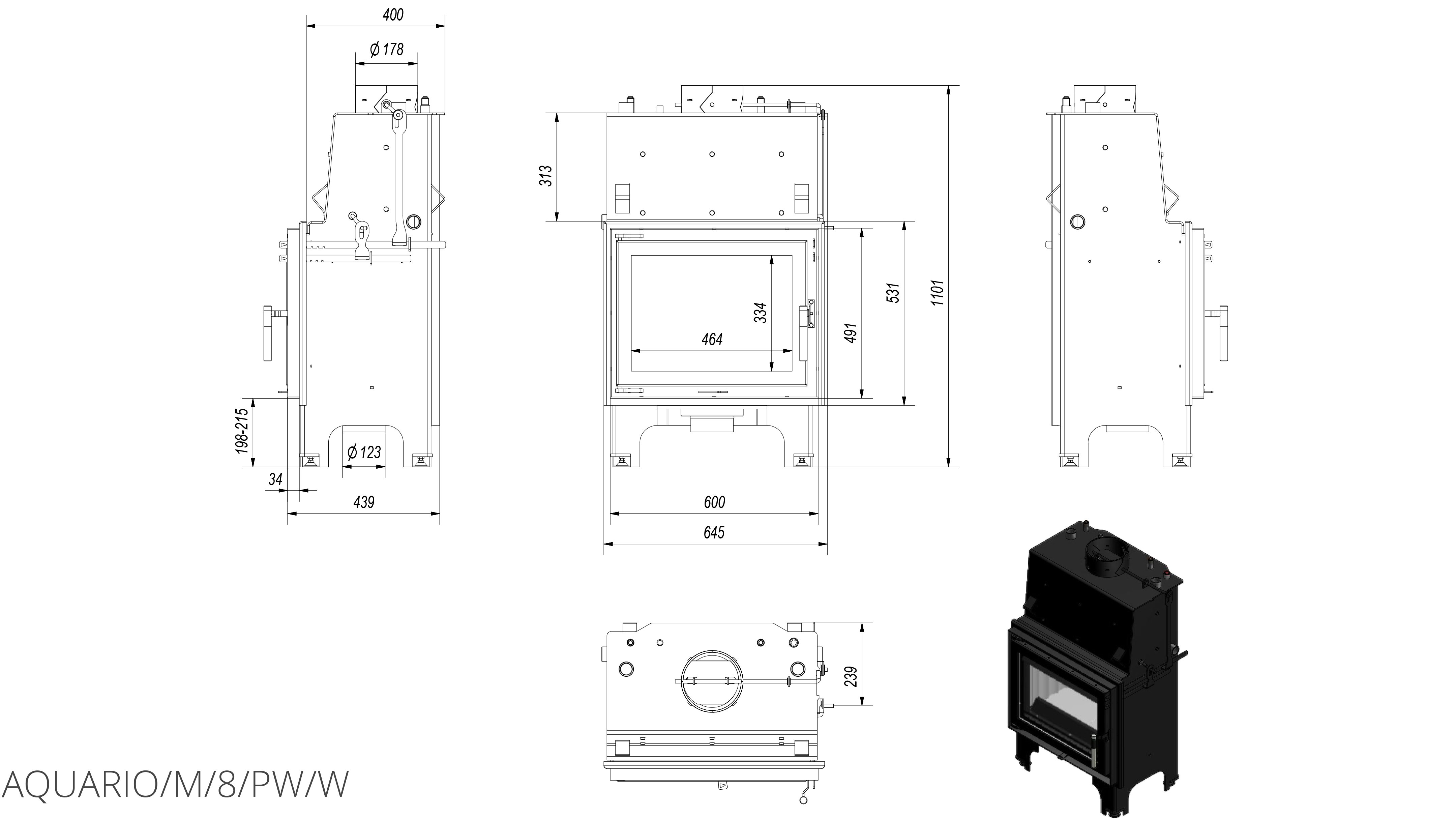 Каминная топка Kratki Aquario/M/8/PW/W