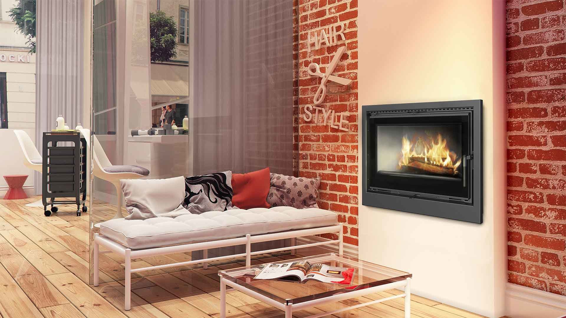 - Дополнительно ограниченое налипание копоти наступает благодаря применённой системе чистого стекла. Воздушная завеса отгораживает стекло от камеры сгорания. Благодаря этому оно не загрязняется.