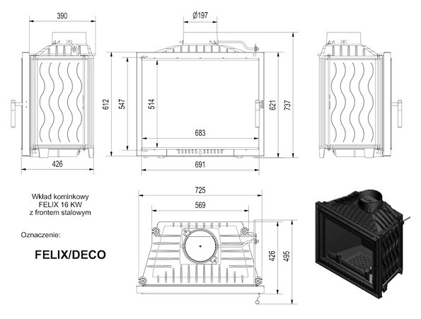 Такие топки имеют хороший КПД (намного больше, чем открытый дровяной камин), а также отличаются более высокий уровнем безопасности – процесс горения происходит в закрытом объеме. Отличительными особенностями топок серии Felix/Deco являются стальная рамка дверцы, стекло нового типа и современная стильная ручка.