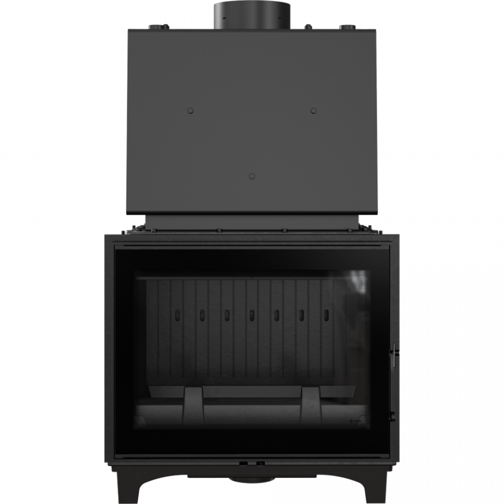 - Чугунная передняя сторона топки выложена декоративной жаростойкой керамикой типа glass, которая выдерживает температуру до 660 °C, имеет сертификат качества и безопасности. Также окончание такого типа предоставляет камину современного и элегантного вида, оптически увеличивает переднюю часть топки.
