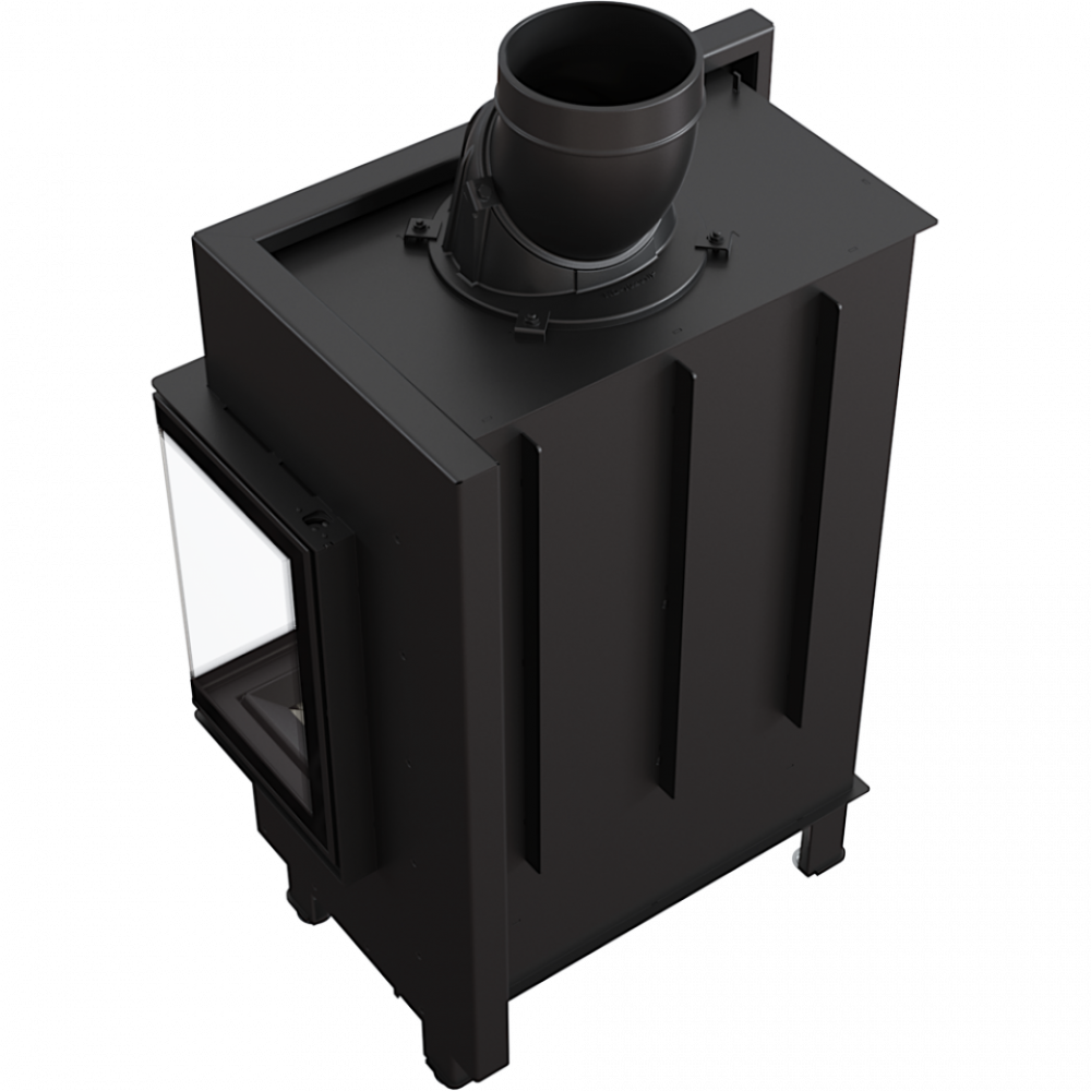 - Модель оснащена подвижным дымоходным отверстием, так что во время монтажа нет необходимости покупать дополнительные колена. Можно легко подобрать угол подключения топки к каминной инсталляции.