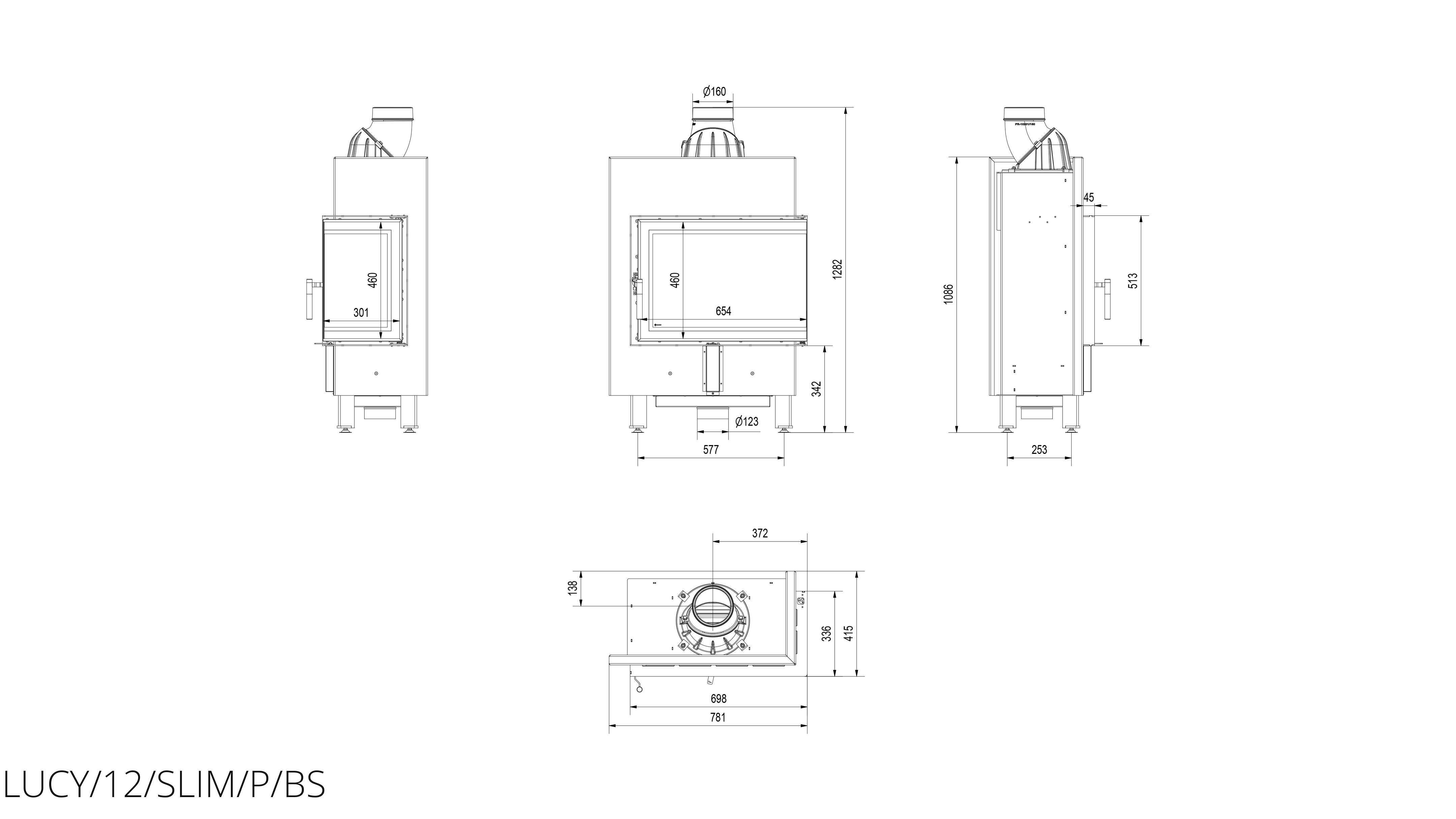 Каминная топка Kratki Lucy/12/SLIM/P/BS
