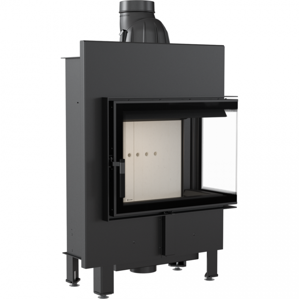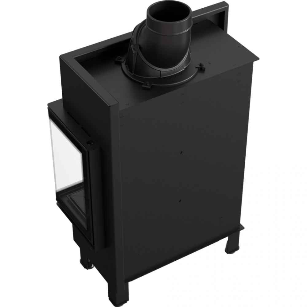 - Модель оснащена подвижным дымоходным отверстием, так что во время монтажа нет необходимости покупать дополнительные колена. Можно легко подобрать угол подключения топки к каминной инсталляции.