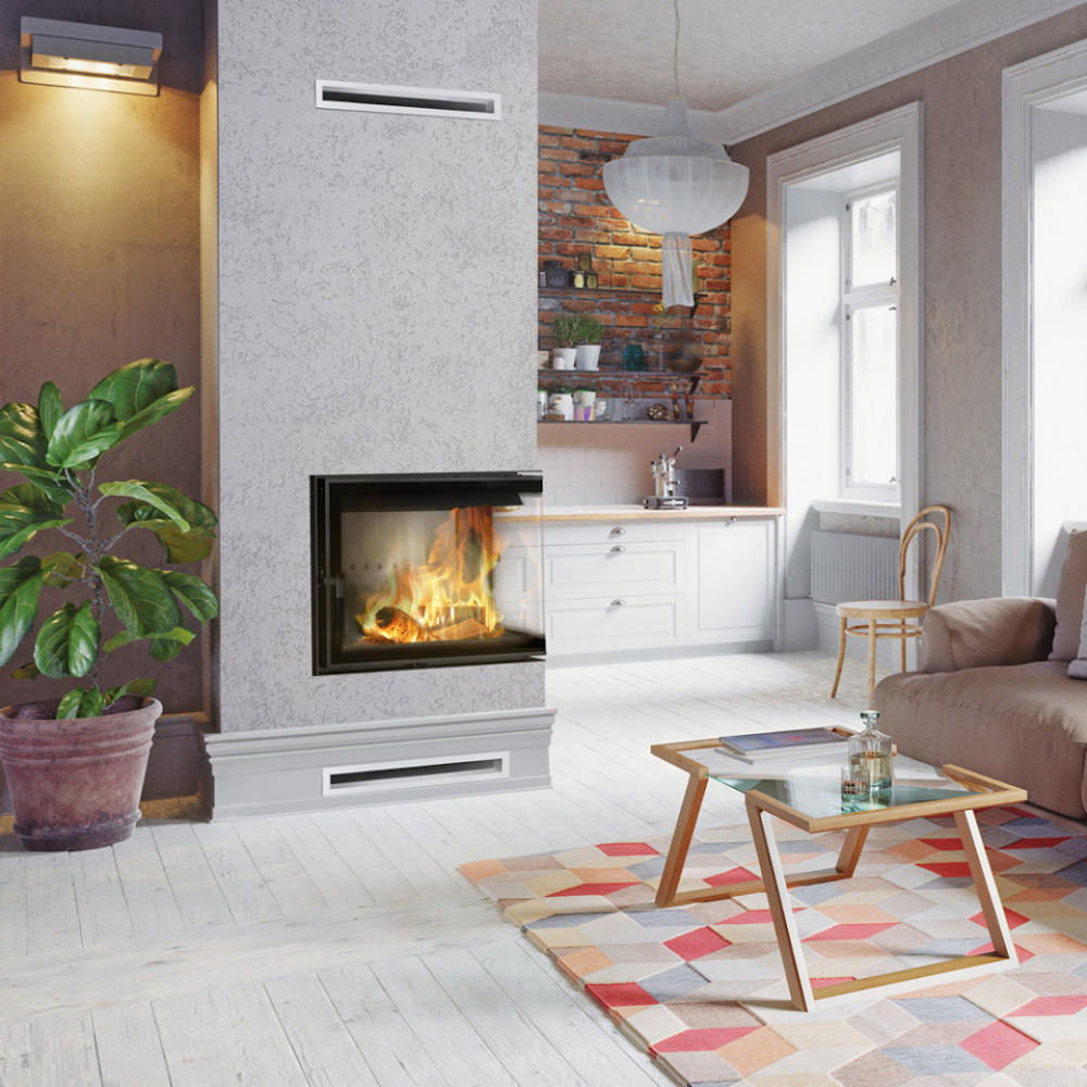 - Топка с современной панорамной передней стороной с неглубокой камерой сгорания и нетипичной панорамой огня, благодаря чему прекрасно подойдет гостиным с небольшой площадью и малой потребностью в нагревании. Идеально подходит для энергосберегающих и пассивных домов. Современные технологии, применяемые в камине, гарантируют экономию энергии и делают работу и чистку устройства беспроблемными.