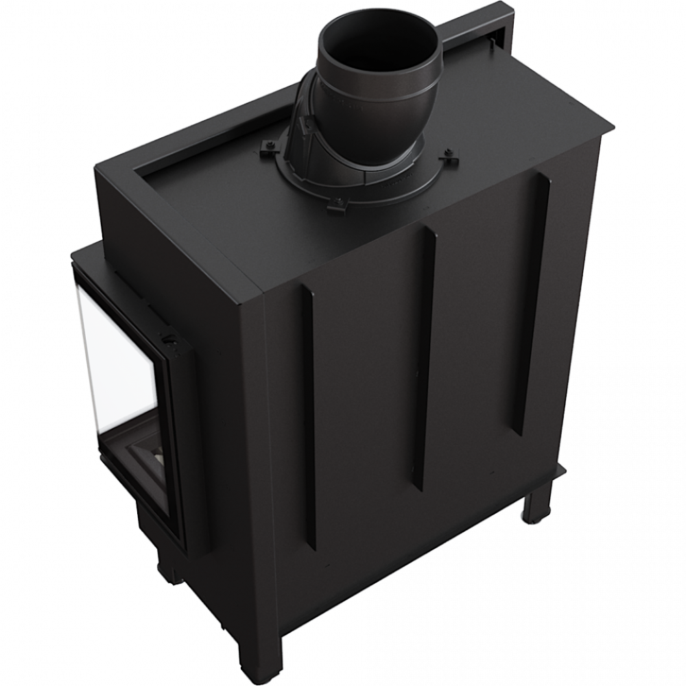 Этот тип камина часто выбирают для открытых помещений, в которых сочетаются различные пространства, например, гостиная со столовой. Благодаря использованной в камине специально профилированной плите, он помещает большее количество древесины. Современные решения, применённые в устройстве, гарантируют энергосбережение и беспроблемное использование и чистку.