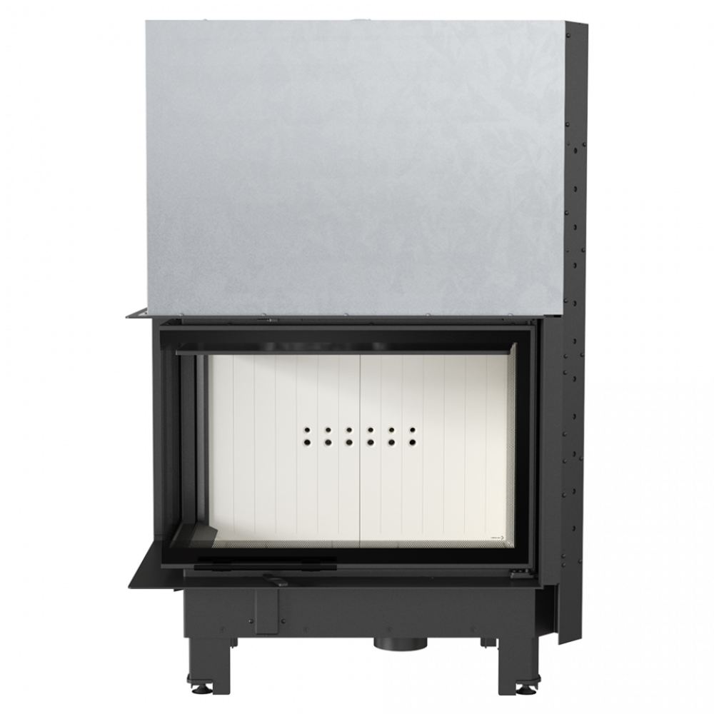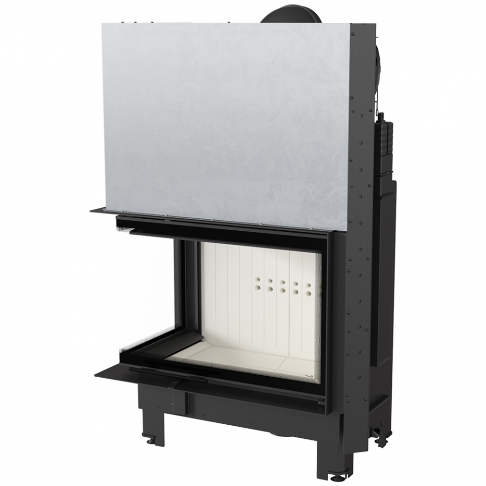 - Дверцы топки работают в системе lift up - стеклянная панель поднимается вверх. Эта система была построена, опираясь в противовес - два блока (по обоим сторонам двери) со стальной рейкой работают в направляющих на двух несущих роликах, благодаря чему вес двери равномерно распределяется. Они движутся вдоль на огнеупорных роликах, установленных в дверной раме, что гарантирует их лёгкое, тихое и бесперебойное функционирование. Движение дверец происходит на расстоянии пару миллиметров от корпуса, что предотвращает повреждение герметизации. Дверцы, которые закрываются, с большой силой погружаются в дверную раму, благодаря чему камера сгорания есть полностью герметичной.