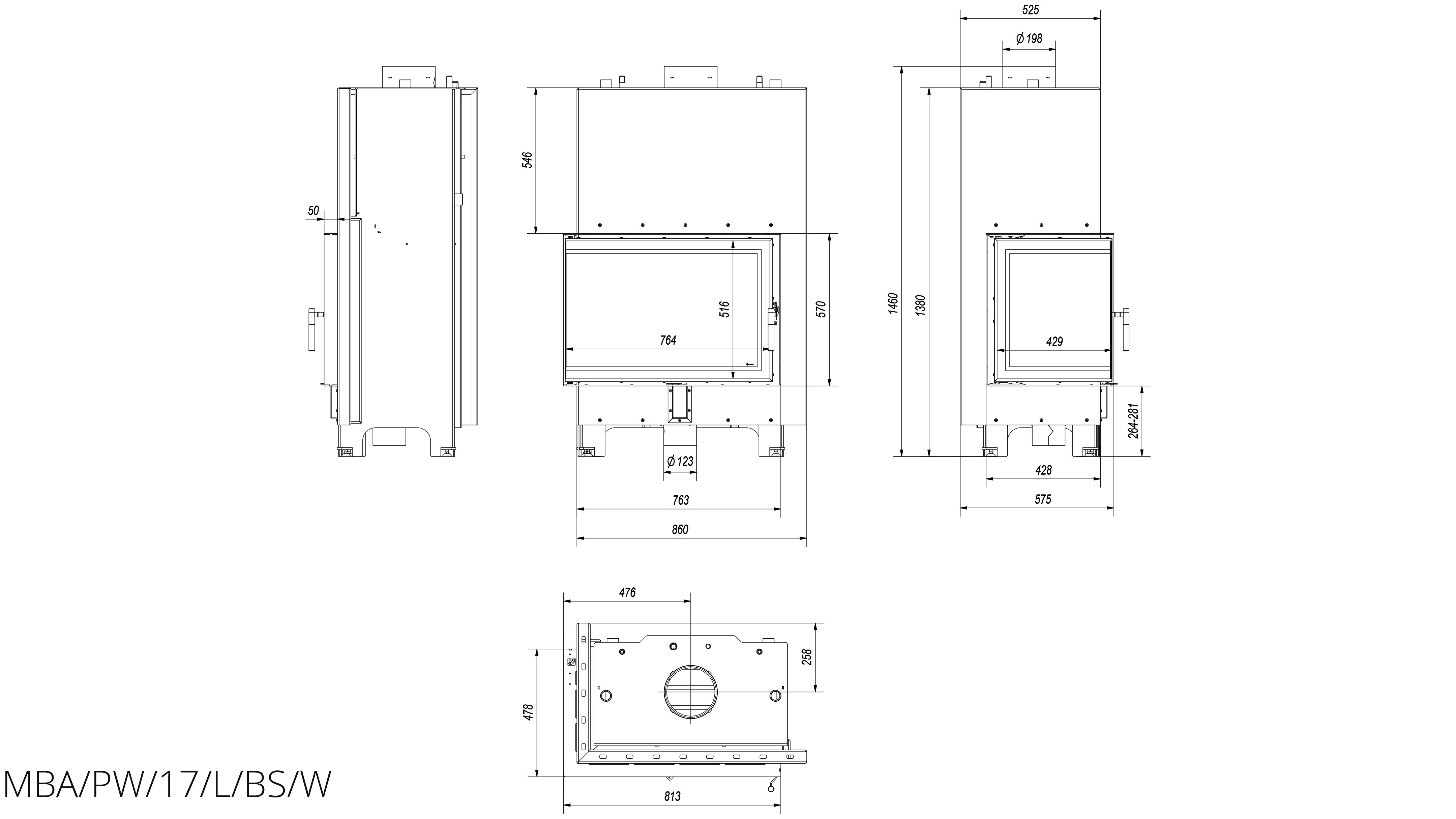 Каминная топка Kratki MBA/PW/17/L/BS/W