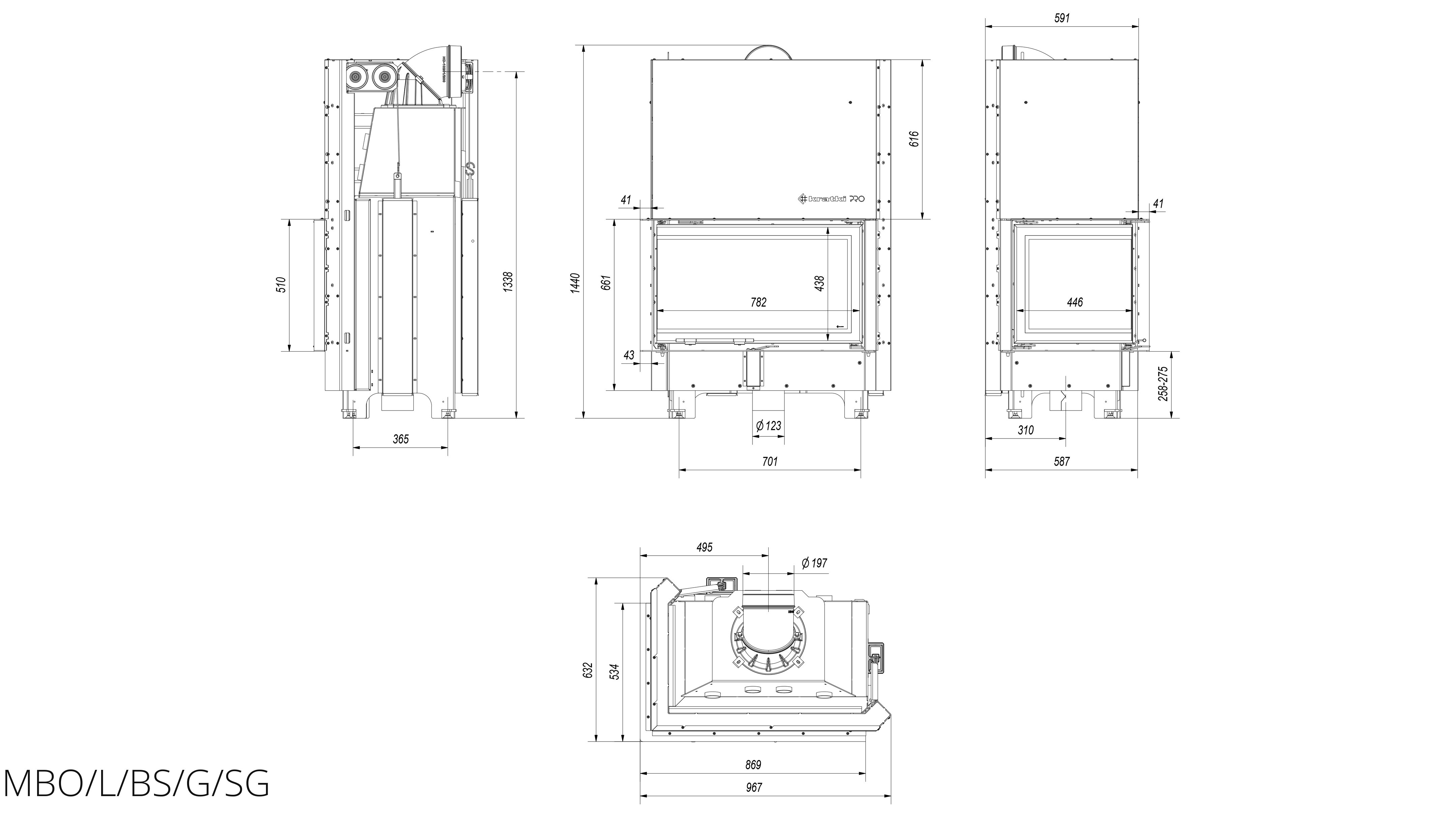 Стальная каминная топка Kratki MBO/L/BS/G/SG (Г-образное стекло слева, гильотина) предназначена для монтажа камина угловой конструкции. Большая камера сгорания футерована современной керамикой Acumotte и прикрыта двухсторонним просмотровым стеклом. В камине реализован принцип подового горения. Для удобства прибор оснащен дымоходом с поворотным регулированием.