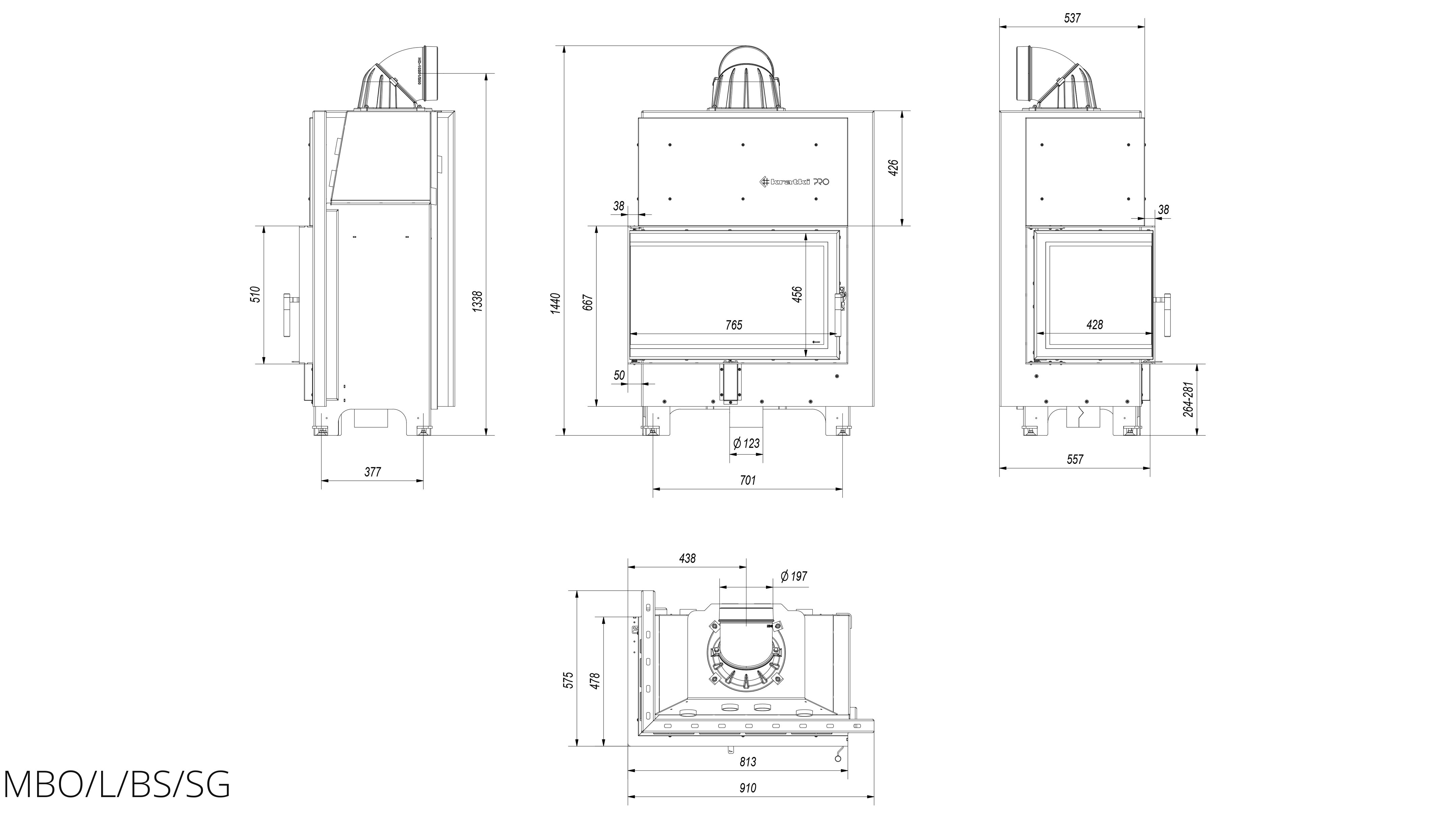 Каминная топка Kratki MBO/L/BS/SG (Г-образное стекло слева) выполнена из качественной котловой стали, что значительно уменьшает вес по сравнению с чугунными моделями и делает устройство более удобным в обращении. Прибор оснащен регулирующимися ножками, чтобы конструкция была максимально устойчивой. Основным видом топлива являются дрова и уголь в брикетах.