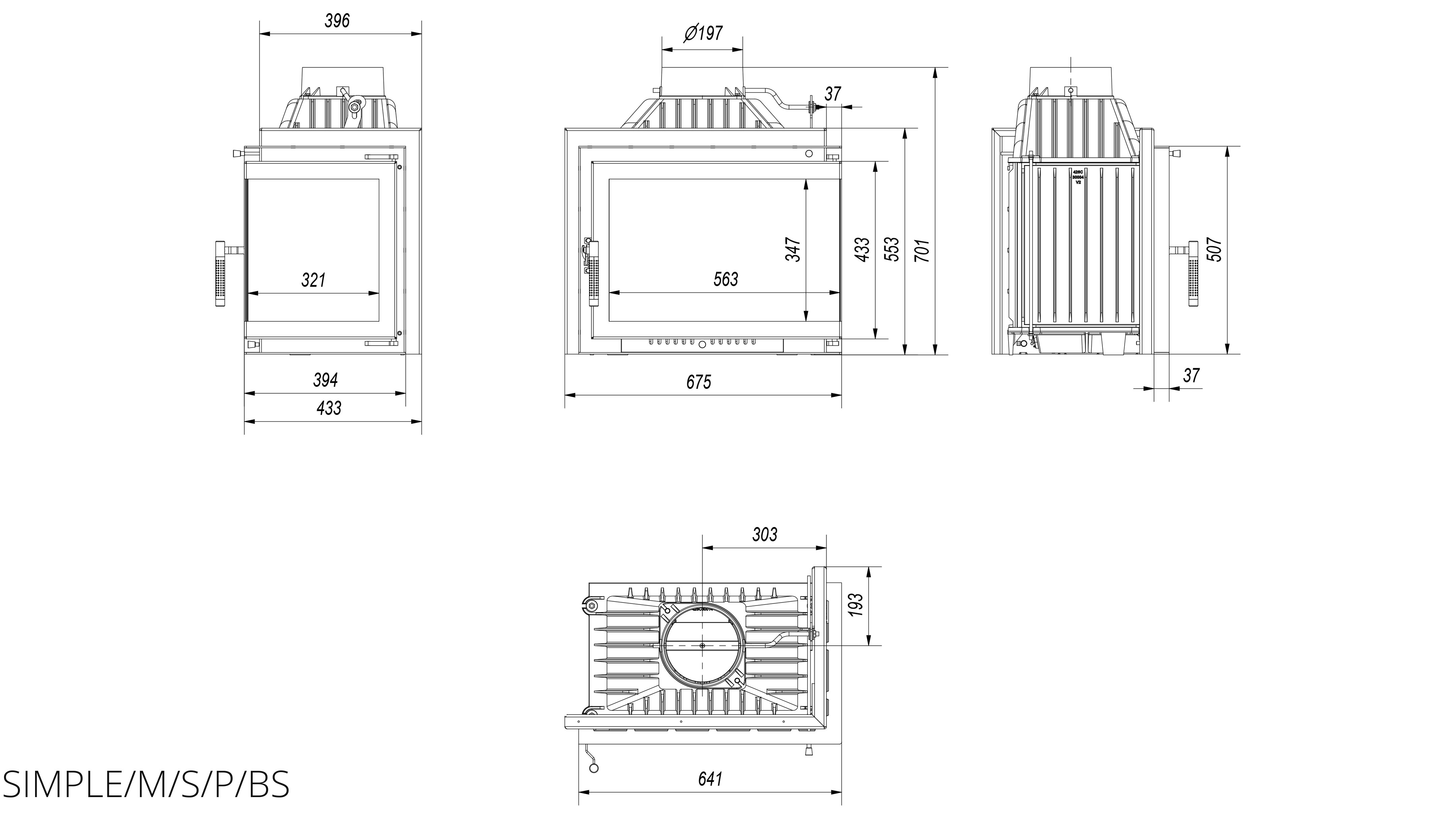 • Ручное управление тягой камина с помощью встроенного шибера.