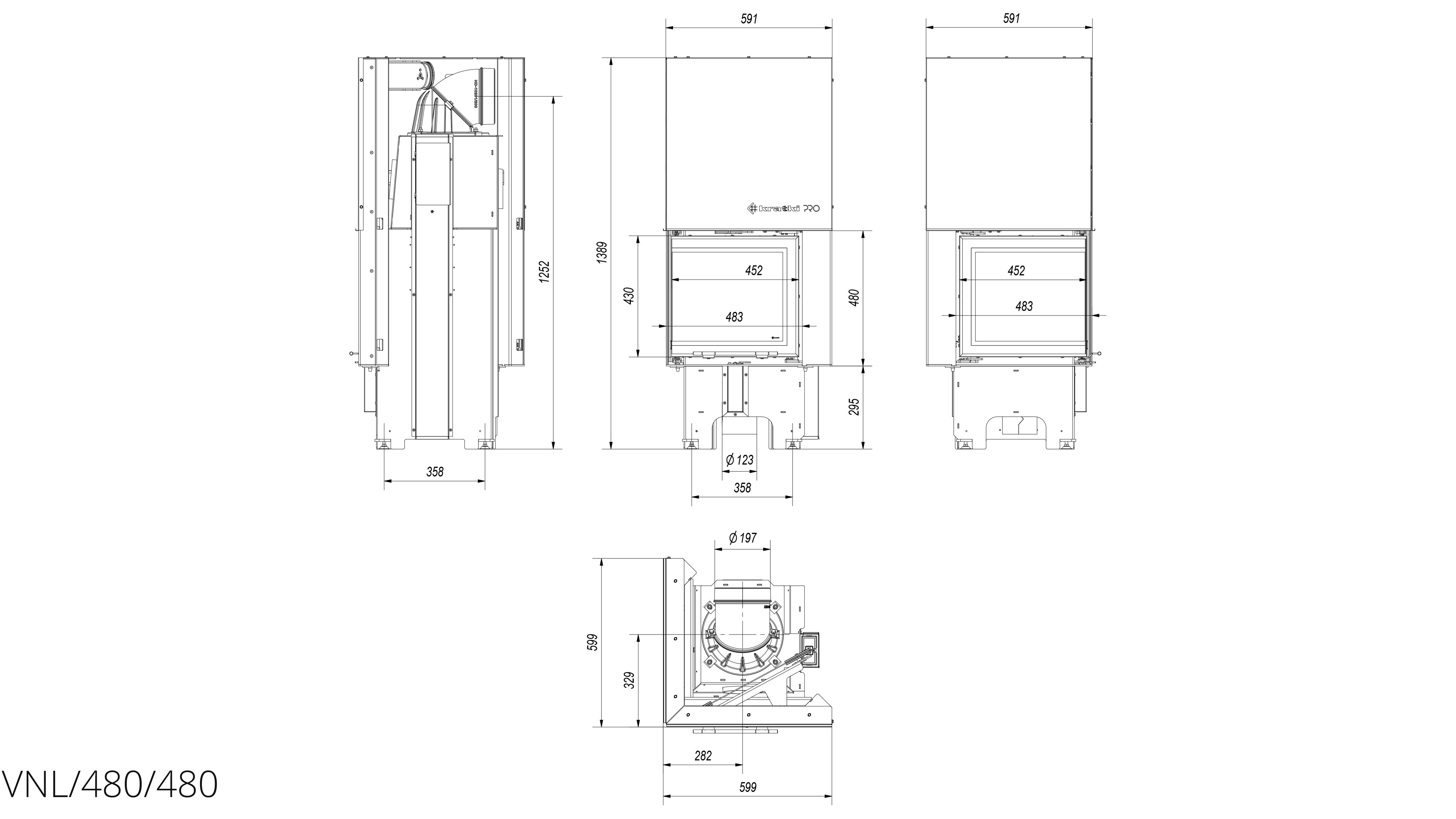 Современная каминная топка Kratki VNL/480/480 (Г-образное стекло слева, гильотина) в варианте с дверцами, что поднимаются вверх (гильотина - система подъема) с боковым стеклом без рамы сочетает уникальную эстетику и исключительные функциональные свойства. Вне визуальных качеств, устройство гарантирует исправное отопления помещений и экологическое сжигание древесины.