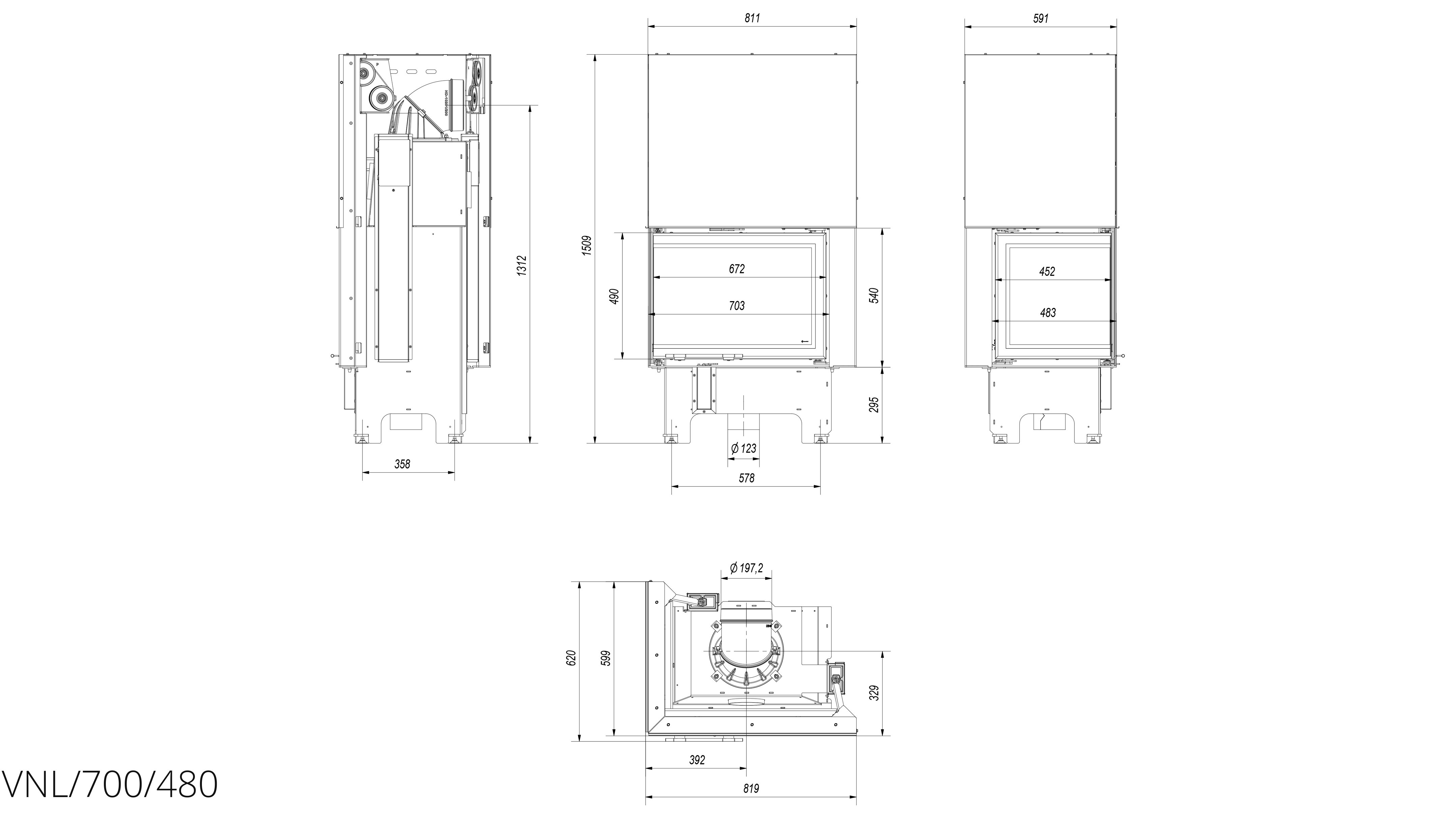 Современная каминная топка Kratki VNL/700/480 (Г-образное стекло слева, гильотина) в варианте с дверцами, что поднимаются вверх (гильотина - система подъема) с боковым стеклом без рамы сочетает уникальную эстетику и исключительные функциональные свойства. Вне визуальных качеств, устройство гарантирует исправное отопления помещений и экологическое сжигание древесины.
