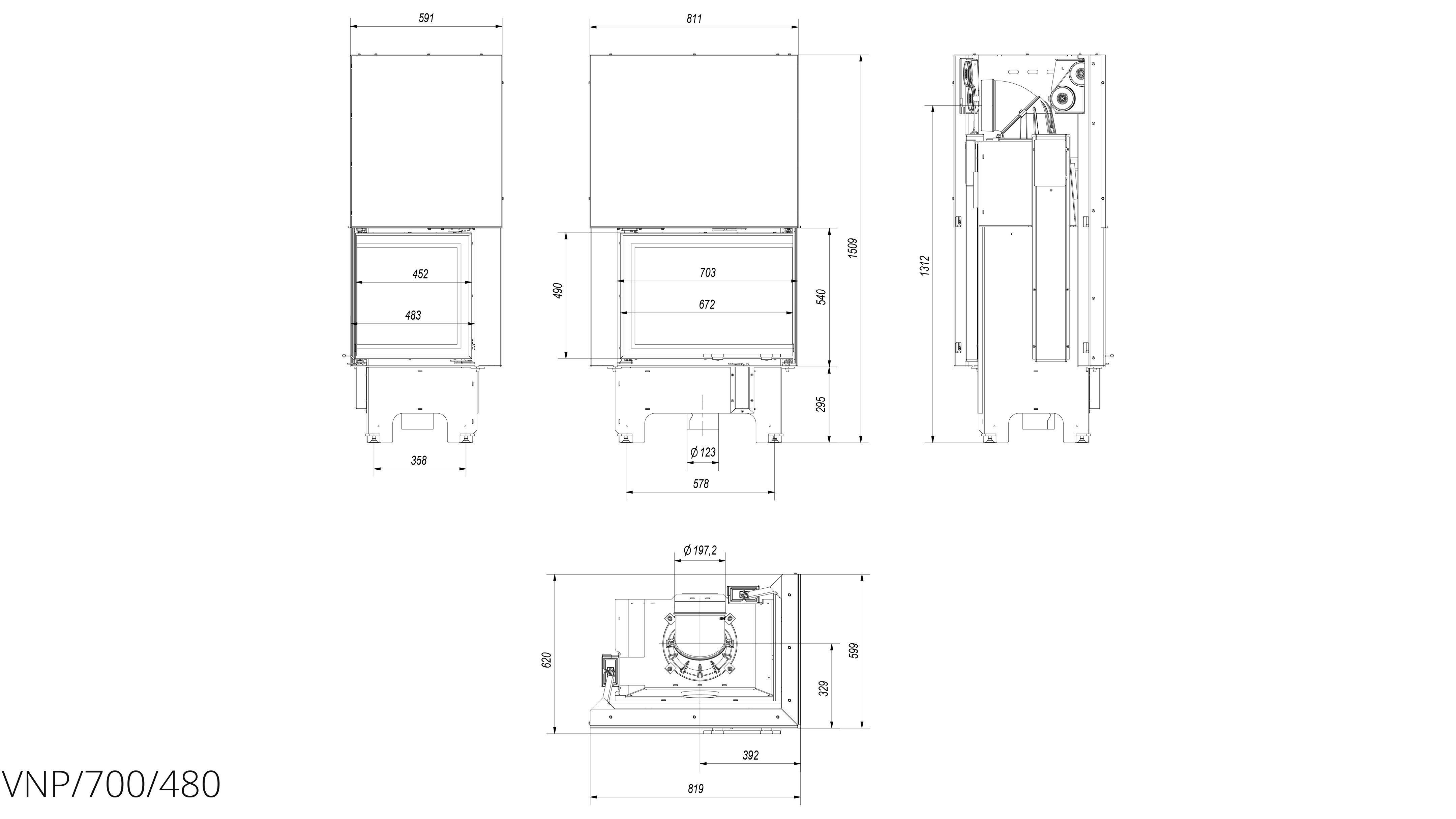 Современная каминная топка Kratki VNP/700/480 (Г-образное стекло справа, гильотина) в варианте с дверцами, что поднимаются вверх (гильотина - система подъема) с боковым стеклом без рамы сочетает уникальную эстетику и исключительные функциональные свойства. Вне визуальных качеств, устройство гарантирует исправное отопления помещений и экологическое сжигание древесины.
