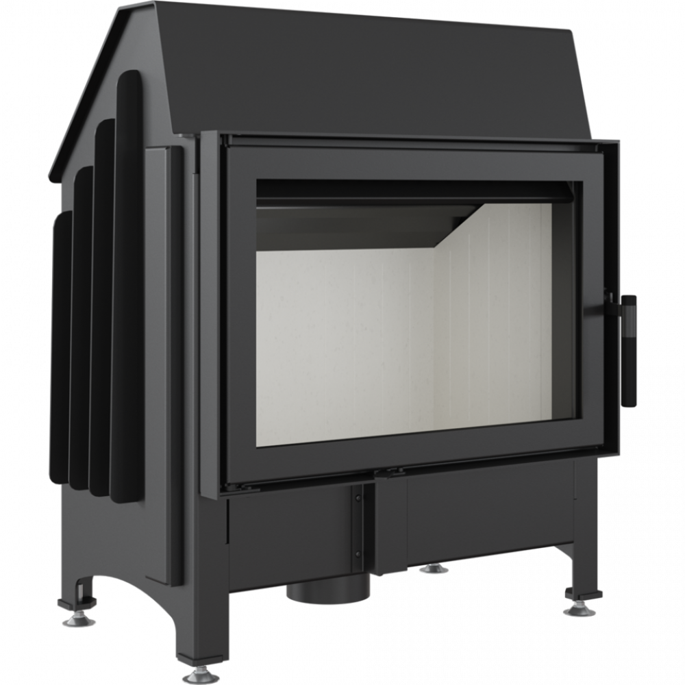 Стальная каминная топка Kratki Zibi (без колосника) с современной панорамной передней стороной, что делает ее более широкой, чем есть на самом деле. Преимуществом подового горения является более равномерный процесс горения в камере сгорания, так как воздух в топку подается по всей ширине топки.