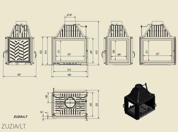 Zuzia/LT – хороший выбор для пользователей, желающих отапливать большое пространство с помощью надежного островного камина. В качестве топлива нужно использлвать сухие дрова. Избыточная влажность дров может привести к образованию креозота на стенках топки и ее некорректрой работе.