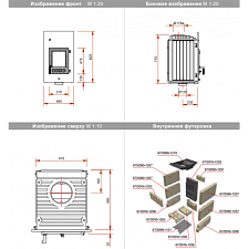 Корпус каминной топки выполнен из жаропрочной стали, колосники и патрубки из чугуна.