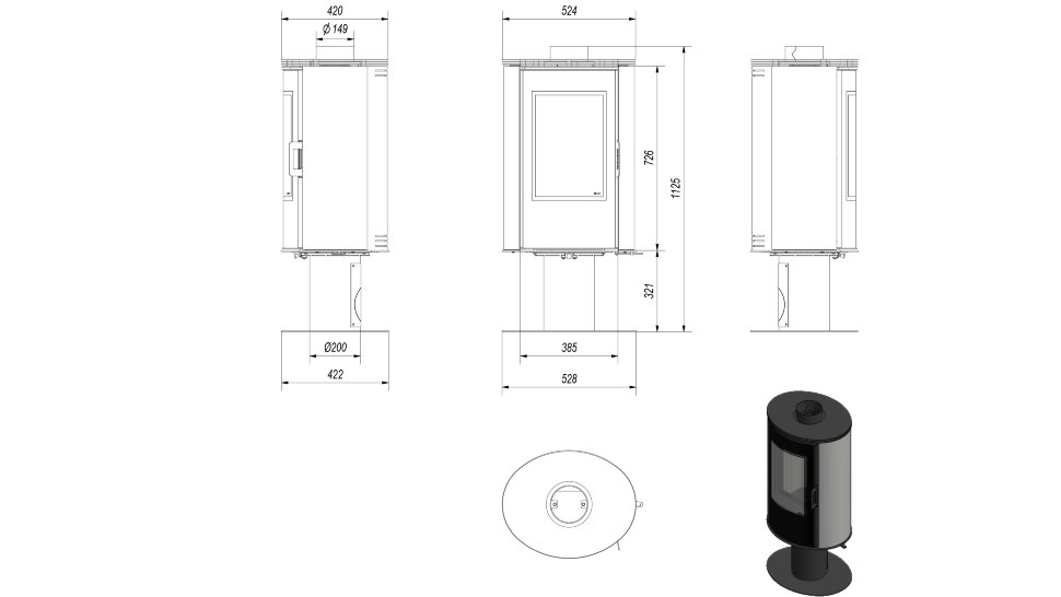 - Диаметр дымохода, (мм) 150