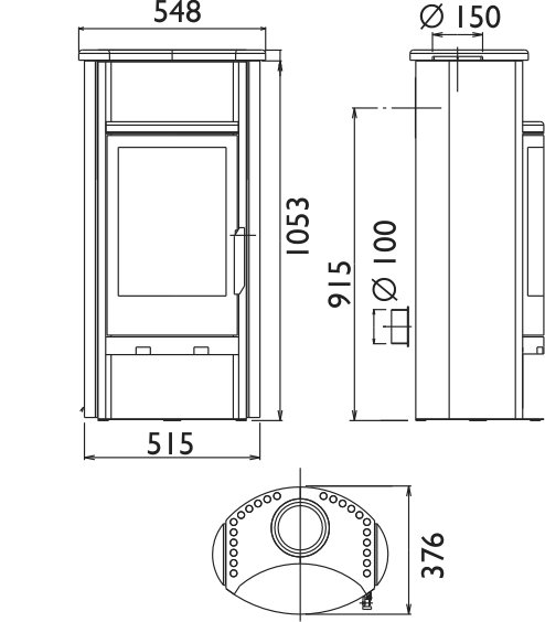 - Диаметр дымохода, (мм) 150