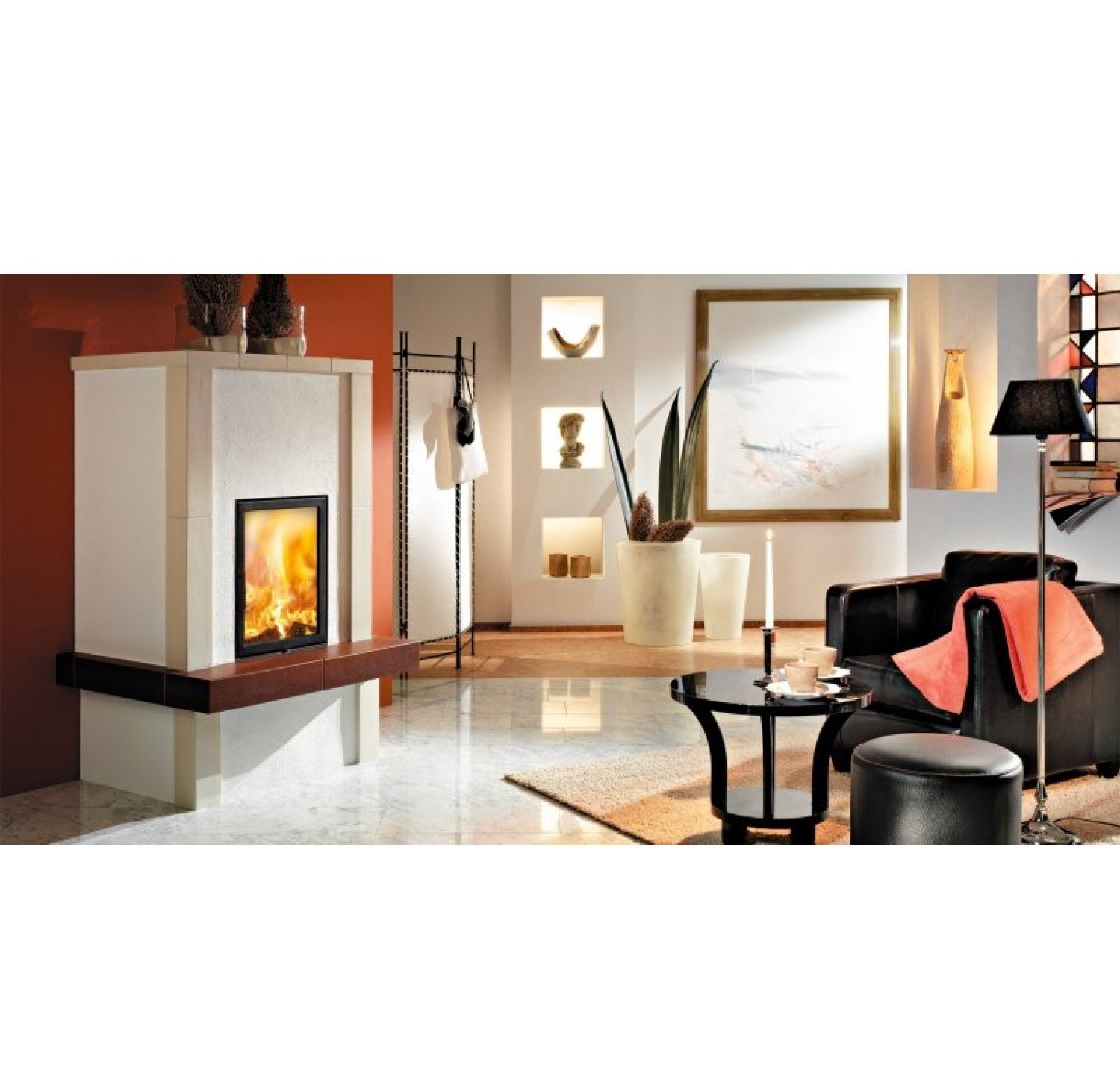 Стальной корпус модели надежно защищен от высоких температур литьевым шамотом (собственного производства Spartherm), которым изнутри облицована топочная камера.Этот материал очень хорошо аккумулирует тепло. В стандартную комплектацию топки Mini Z1 входит шамот золотисто-песочного цвета. Под заказ топка может иметь внутреннюю облицовку из шамота черного цвета.