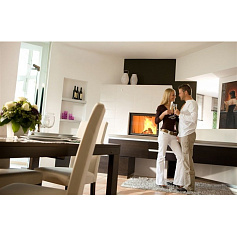 Модель оснащена дымосборником, позволяющим работать топке в открытом режиме без задымления. На фасаде расположен регулятор подачи воздуха для горения.Топка Varia 2Lh 4s имеет регулируемые по высоте ножки, вместительный съемный зольник. Отсутствие шибера гарантирует безопасность работы камина.