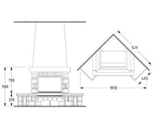 Цена на угловой камин указана в стандартном исполнении (см. чертеж) из указанных материалов без топки.