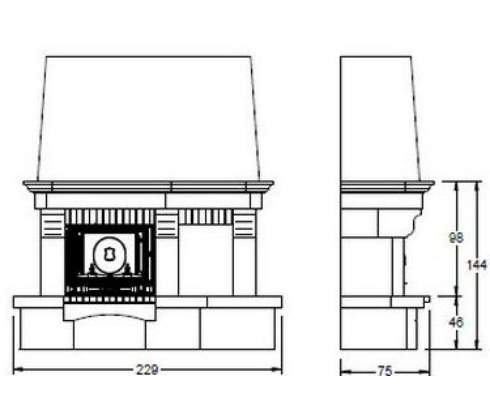 Цена указана за камин в стандартном исполнении (см. чертеж) из указанных материалов без топки.
