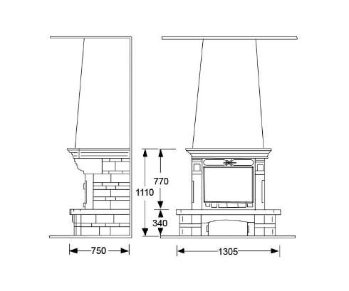 Цена указана за камин в стандартном исполнении (см. чертеж) из указанных материалов без топки.