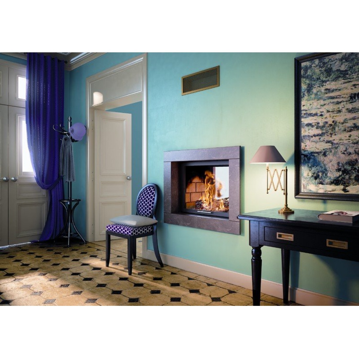 Топка оснащена системой очистки стекла, встроенным шибером и системой подводки внешнего воздуха в камеру сгорания, а также оборудована цепным механизмом подъема двери, съемной колосниковой решеткой и ножками, которые дадут возможность установить топку на неровной поверхности.
