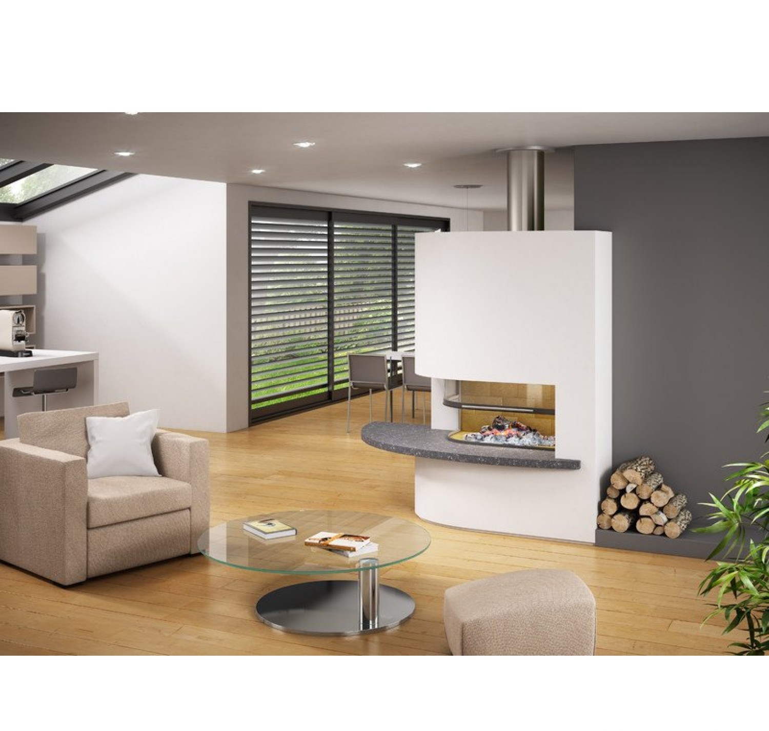 Топка Gable Lateral 900 - топка с угловым скругленным стеклом. Каркас топки выполнен из легированной стали. Очаговая зона выложена высокопрочным огнеупорным кирпичом со швами. Ширина очага 770 мм, глубина очага 367 мм. Высота видимой части пламени 460 мм. Очаг выложен маленькими кирпичными блоками со швами. Размер блока 55х220 мм. Подъемная ручка двери изогнутая 12 см.