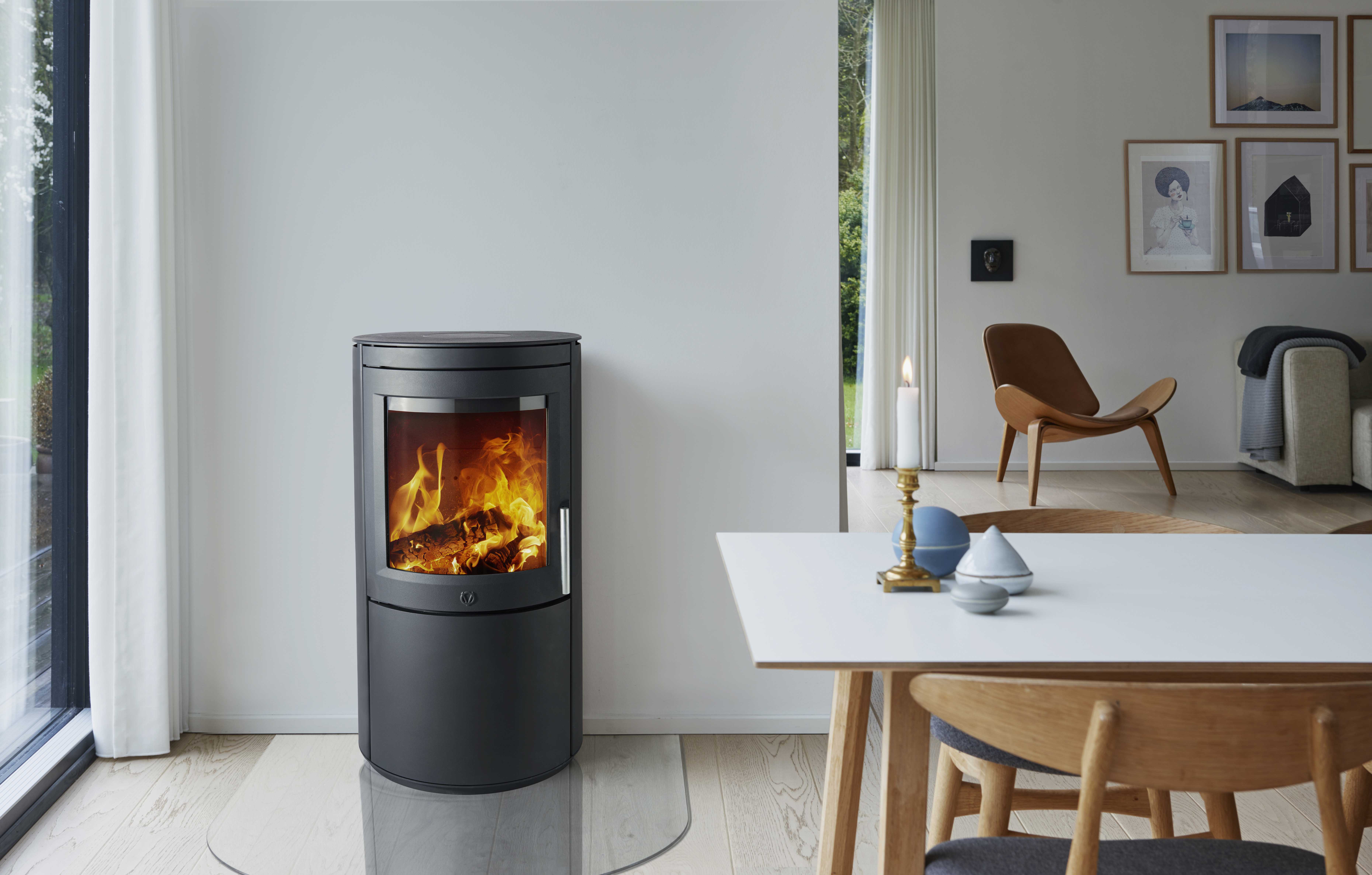 Изогнутое стекло подчеркивает динамичную игру пламени, а сам камин, даже когда он не топится, украшает комнату, подобно скульптуре... В большой камере сгорания размещаются дрова длиной до 35 см. Эргономично расположенная камера сгорания обеспечивает удобное использование и чистку камина. Легкая регулировка подачи воздуха.