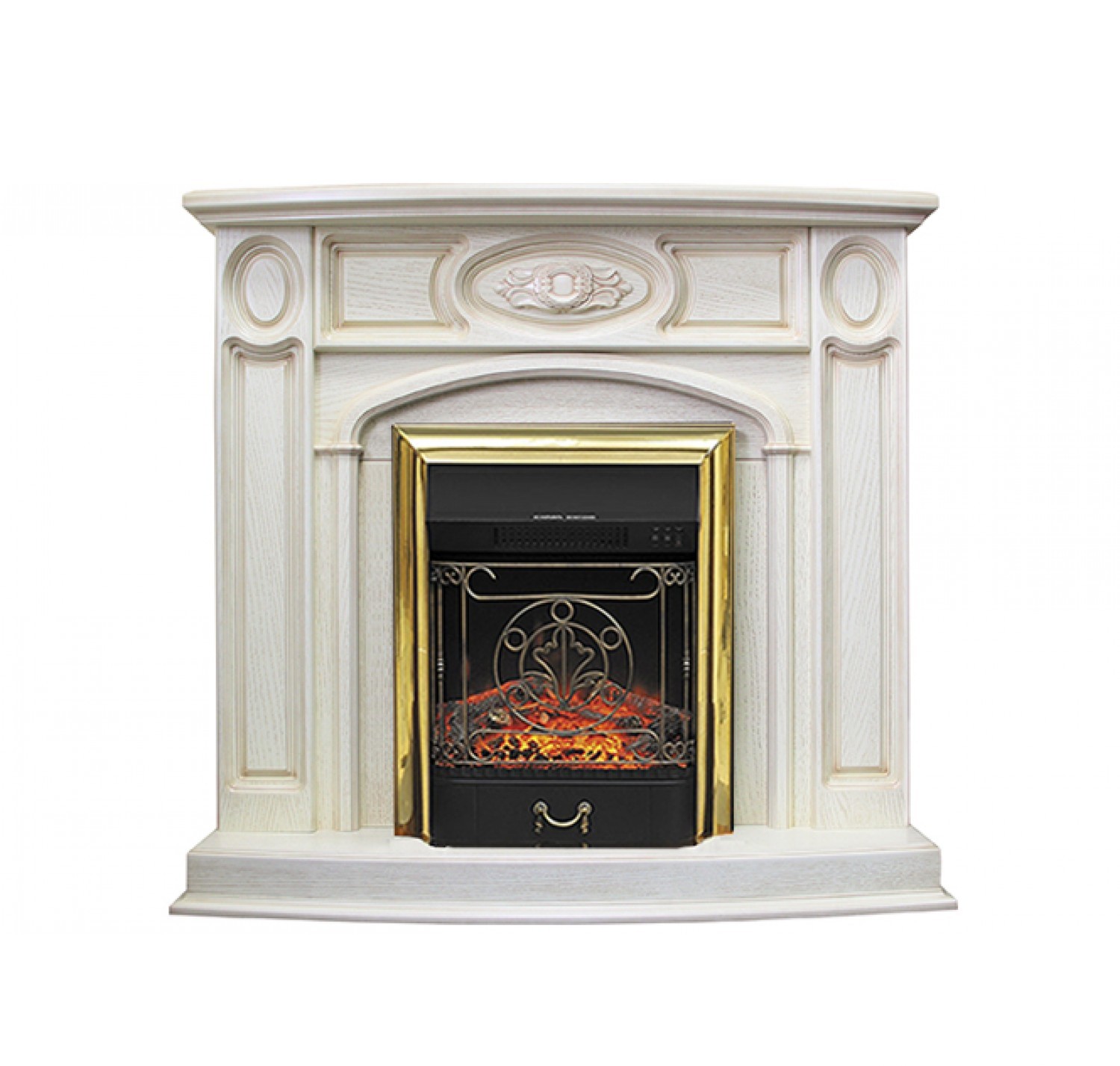 Royal Flame (Роял Флейм) Florence с очагом Majestic FX / Fobos FX – это каминокомплект от производителя Royal Flame, в котором одновременно сочетаются строгость и лаконичность с изяществом и изыском. Фронтальную часть украшает резной художественный узор, а топочная зона обрамлена прекрасным витым орнаментом. Расположенные по бокам импосты и колонны не имеют ярко выраженной формы, а лишь слегка намечены барельефом, что придает облику портала некоторой загадочности и очарованности.