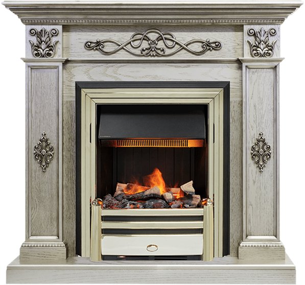 Электрокамин выполнен в золотом цвете. Золото – это материал, который никогда не выйдет из моды, это свидетельство безупречного вкуса и верности традициям. Цвет золота подчёркивает неповторимый стиль и необычность этого камина. К очагу можно подобрать любой портал, который подойдет к вашему интерьеру и станет его лаконичным продолжением. В очаге Dimplex Cavendish применяется эффект «живого» пламени Opti-Myst, в основу которого заложен инновационный принцип имитации огня - в очаге мерцает пламя, практически неотличимое от настоящего. В камине используется муляж дров ручной работы, которые невозможно отличить от настоящих поленьев, а благодаря подсветке создается полная имитация жарко пылающего очага.