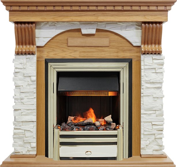 Электрокамин выполнен в золотом цвете. Золото – это материал, который никогда не выйдет из моды, это свидетельство безупречного вкуса и верности традициям. Цвет золота подчёркивает неповторимый стиль и необычность этого камина. К очагу можно подобрать любой портал, который подойдет к вашему интерьеру и станет его лаконичным продолжением. В очаге Dimplex Cavendish применяется эффект «живого» пламени Opti-Myst, в основу которого заложен инновационный принцип имитации огня - в очаге мерцает пламя, практически неотличимое от настоящего. В камине используется муляж дров ручной работы, которые невозможно отличить от настоящих поленьев, а благодаря подсветке создается полная имитация жарко пылающего очага.